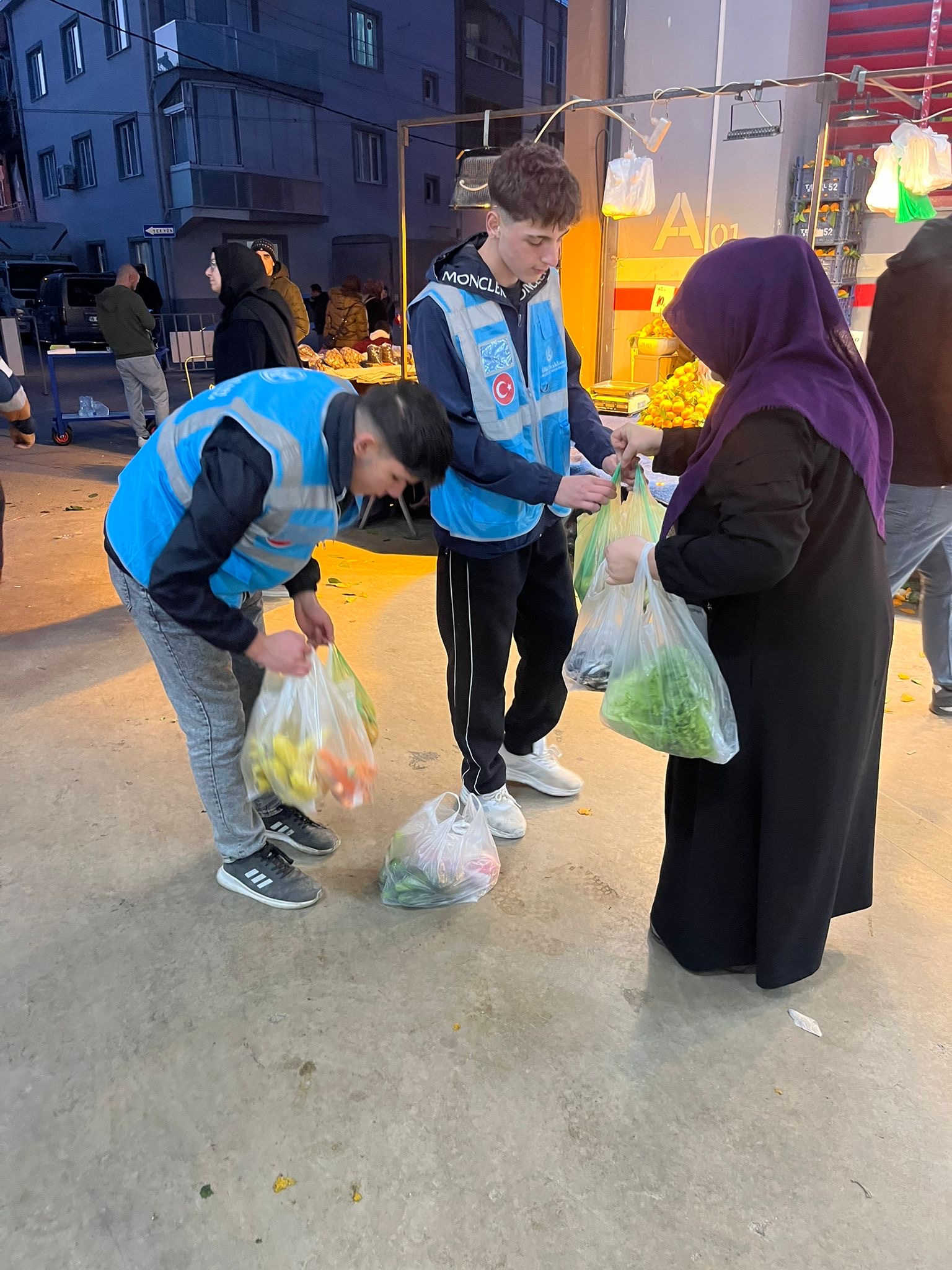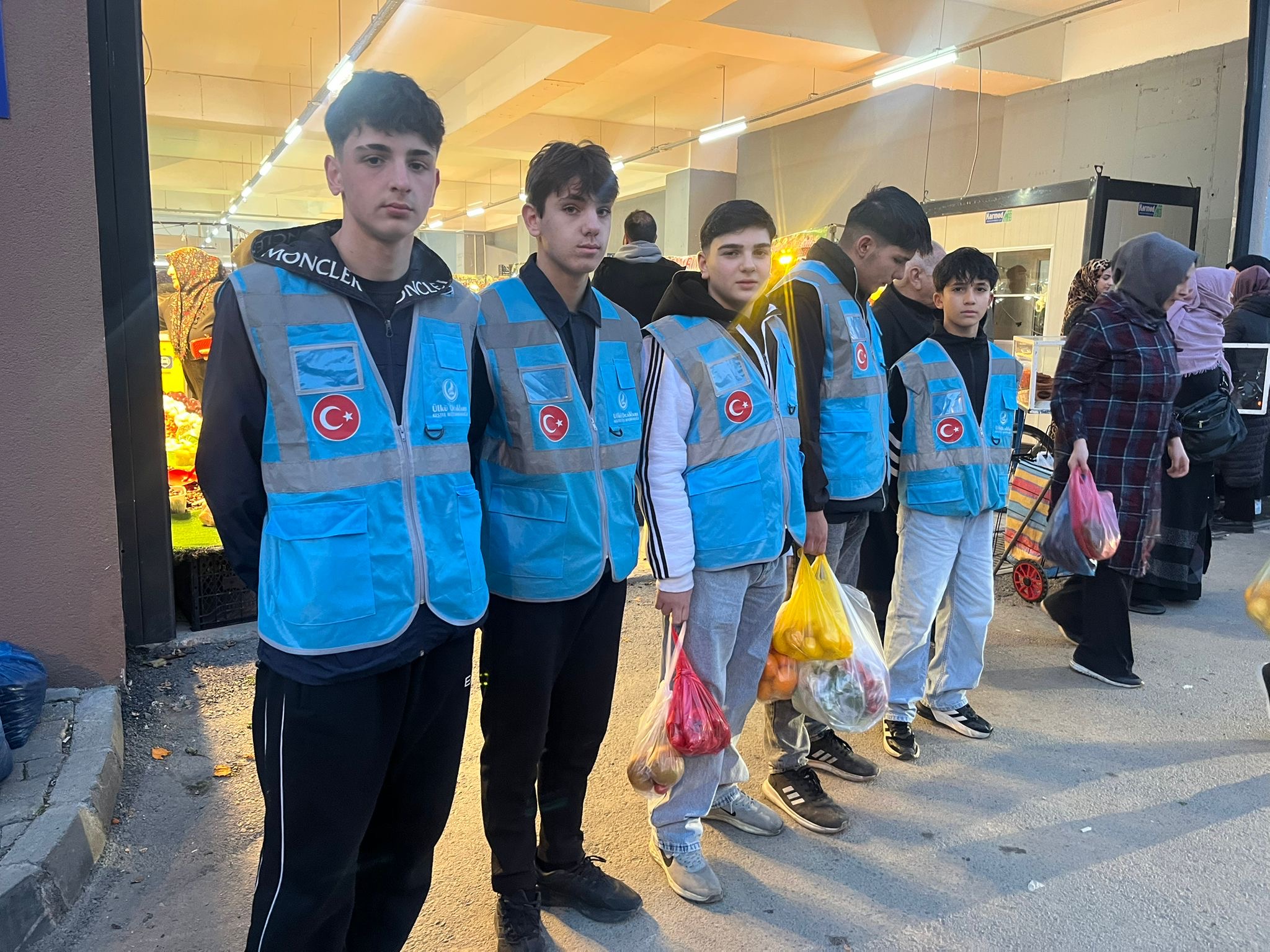 Gençler, pazar alışverişi yapan yaşlıların poşetlerini taşıyarak hem gönülleri kazandı hem de toplumsal dayanışmanın önemine dikkat çekti.
